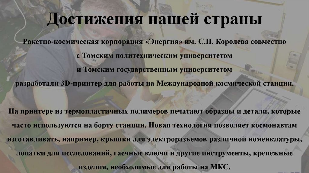 Достижения нашей страныРакетно-космическая корпорация «Энергия» им. С.П. Королева совместно