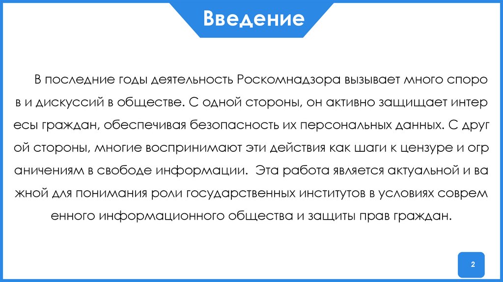 ВведениеВ последние годы деятельность Роскомнадзора вызывает много споро