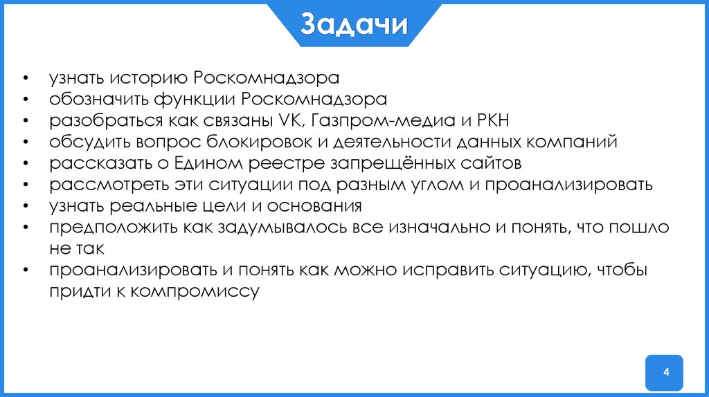 Задачиузнать историю Роскомнадзора