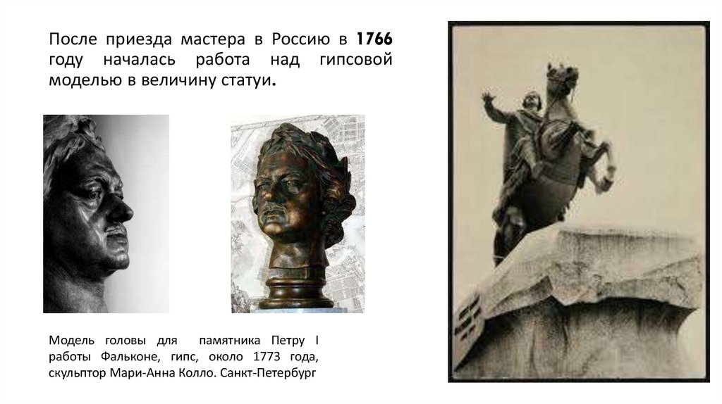 После приезда мастера в Россию в 1766году началась работа над гипсовой