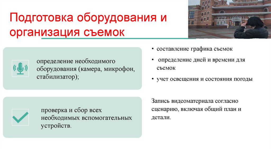 Подготовка оборудования иорганизация съемок