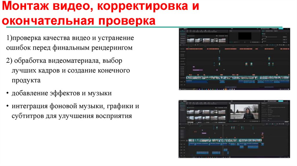 Монтаж видео, корректировка иокончательная проверка