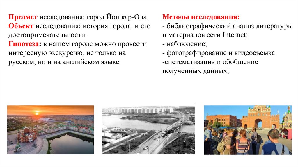 Предмет исследования: город Йошкар-Ола.Объект исследования: история города и его