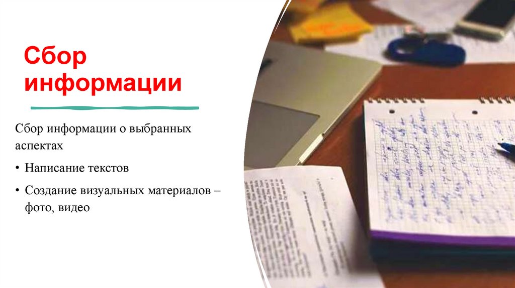 • Сбор информации о выбранных аспектах работы