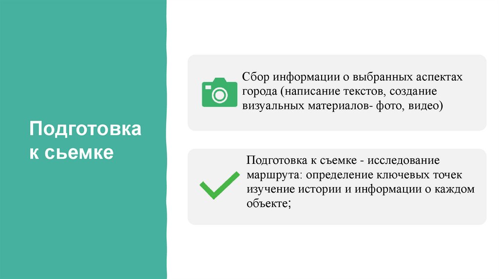 Сбор информации о выбранных аспектахгорода (написание текстов, создание