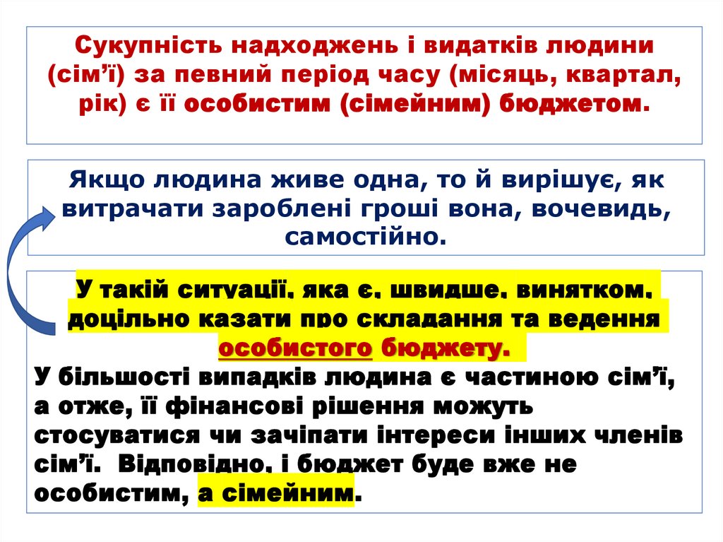 Сукупність надходжень і видатків людини(сім’ї) за певний період часу (місяць, квартал,