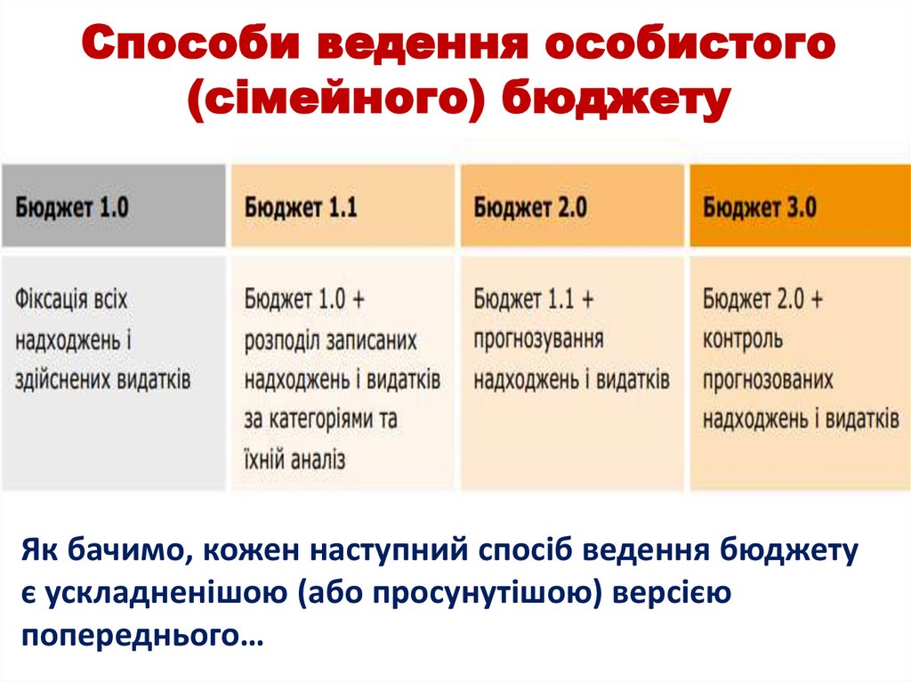 Як бачимо, кожен наступний спосіб ведення бюджету