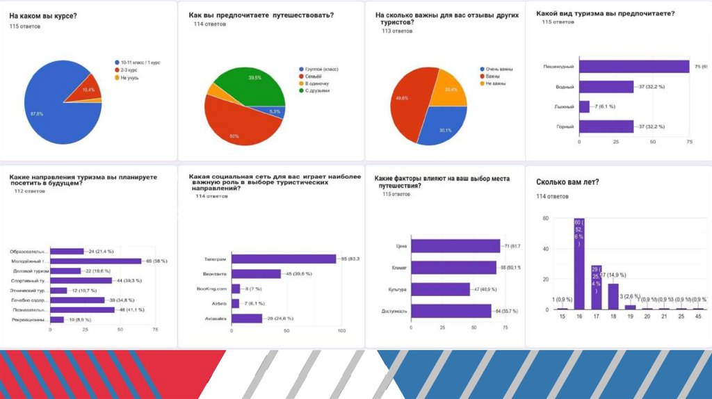 1.Популярные направления : Выявлены наиболее востребованные туристические направления среди сверстников, такие какпляжные курорты, горнолыжные курорты и культурные столицы.