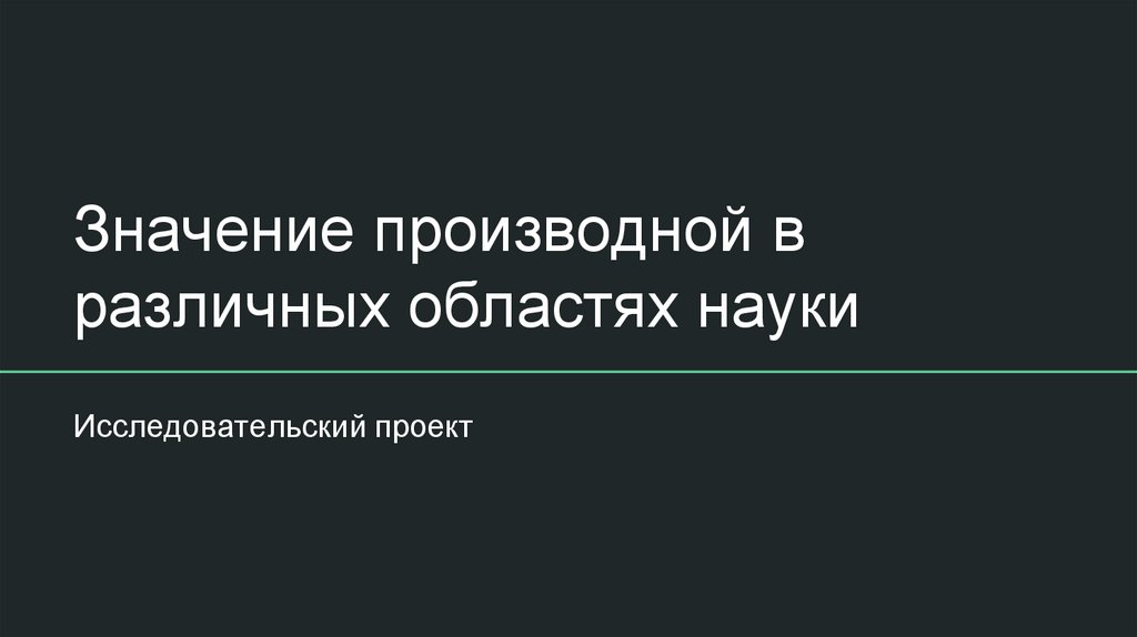 ЦельИзучить и проиллюстрировать значение производной в различных областях науки и её
