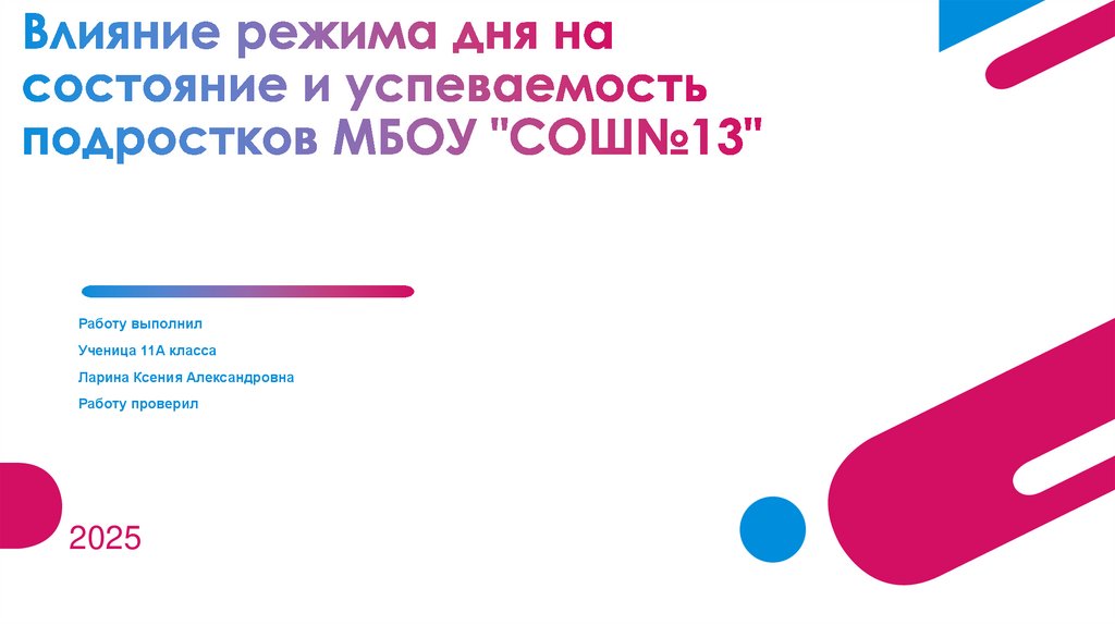 Влия\ние режима дня на состояние и успеваемость подростков МБОУ СОШ№13