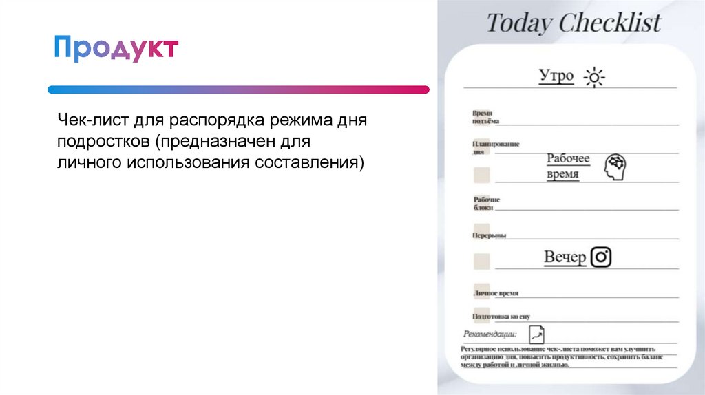 Чек-лист для распорядка режима дняподростков (предназначен для