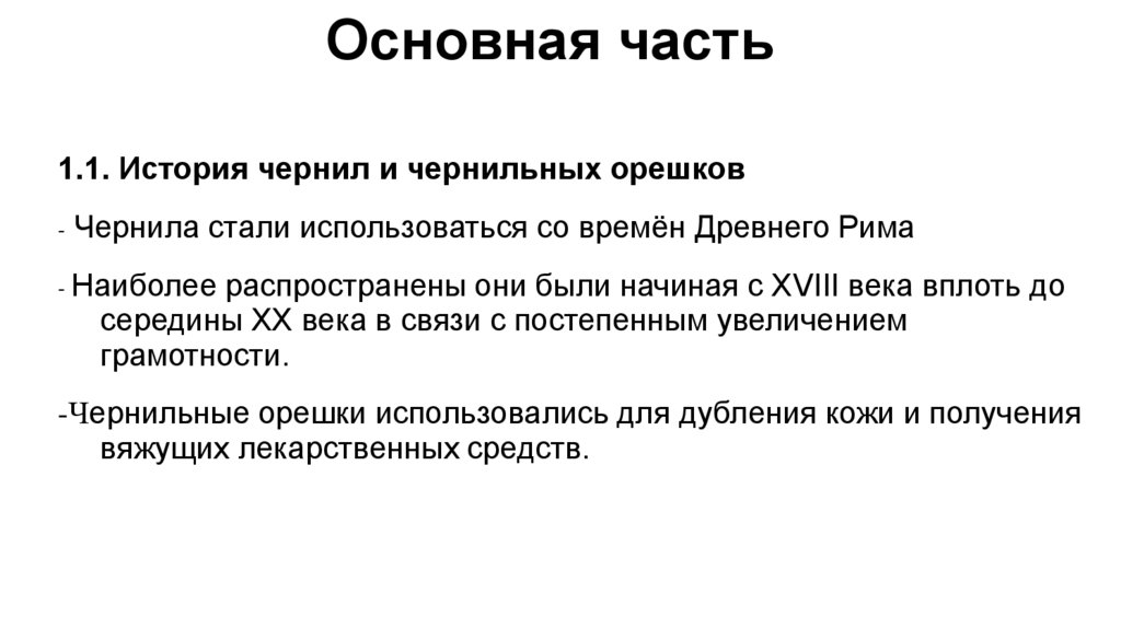 Основная часть1.1. История чернил и чернильных орешков