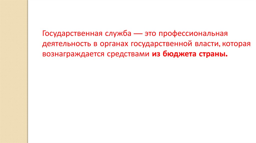 Государственная служба — это профессиональнаядеятельность в органах государственной власти, которая