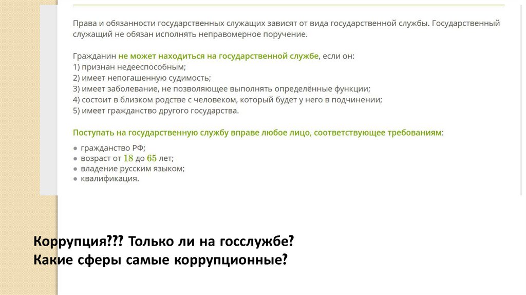 Коррупция??? Только ли на госслужбе?Какие сферы самые коррупционные?