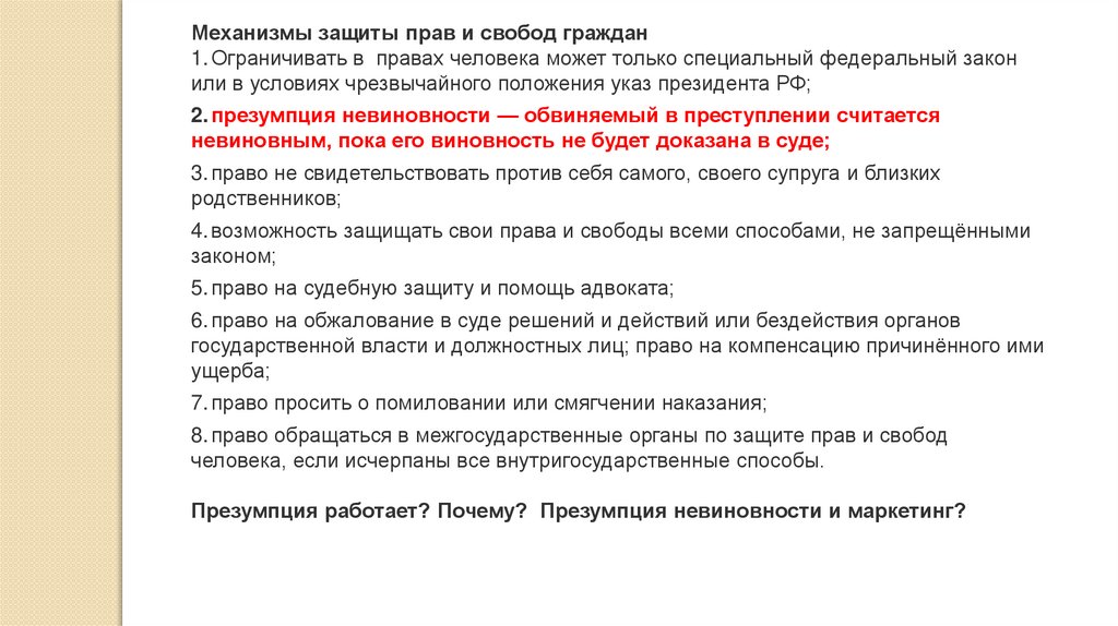 Презумпция работает? Почему? Презумпция невиновности и маркетинг?