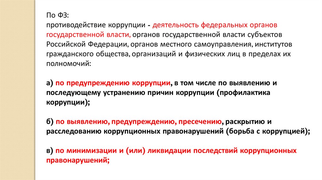 По ФЗ:противодействие коррупции - деятельность федеральных органов