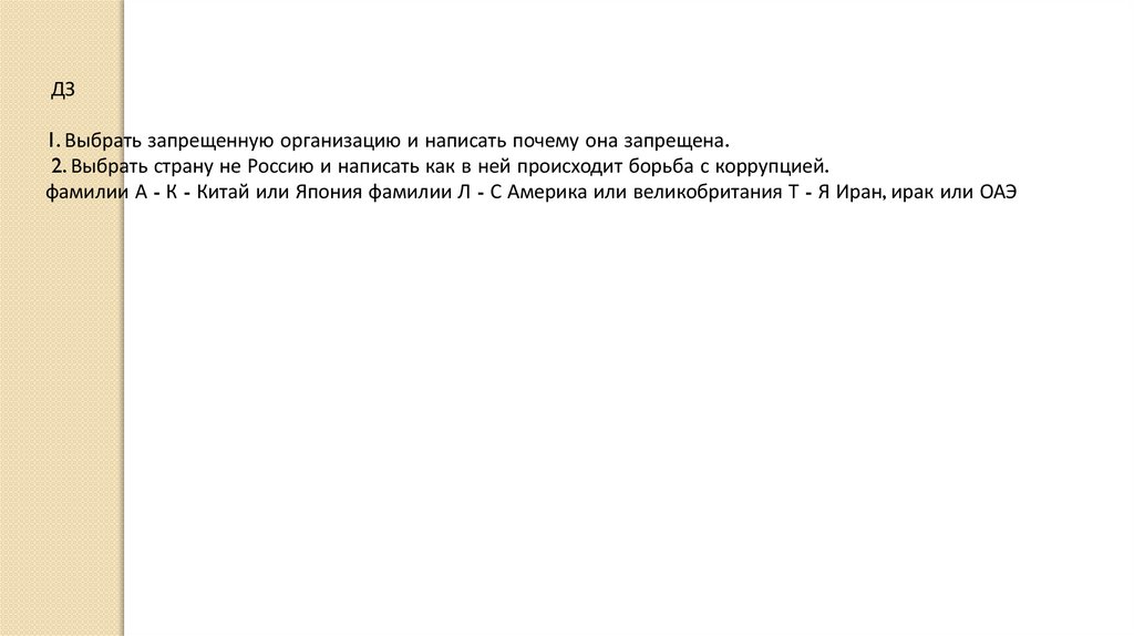 1. Выбрать запрещенную организацию и написать почему она запрещена.
