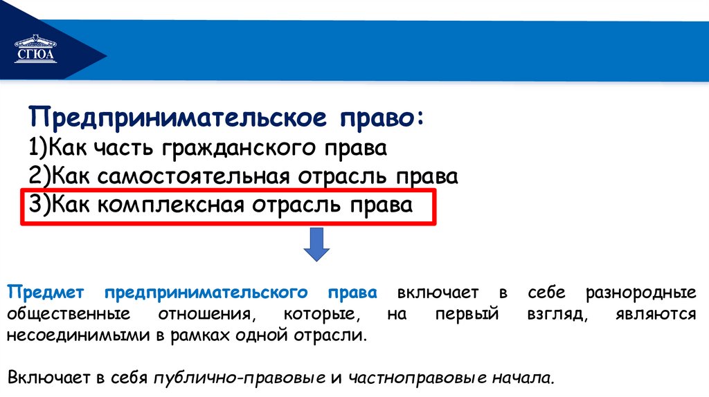 1. Предпринимательское право как отрасль законодательства, наука и учебная