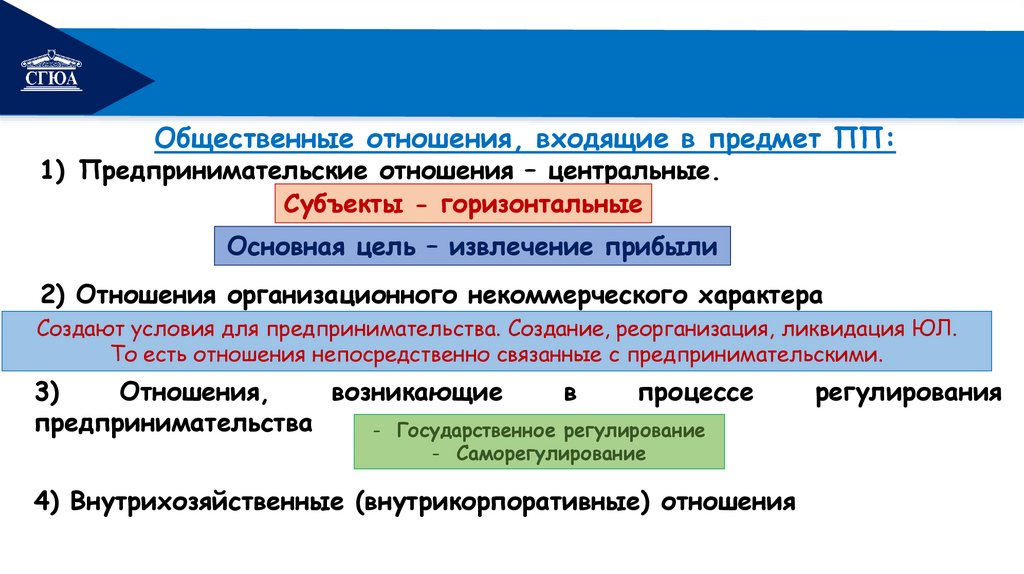 РЕМОНТОбщественные отношения, входящие в предмет ПП: