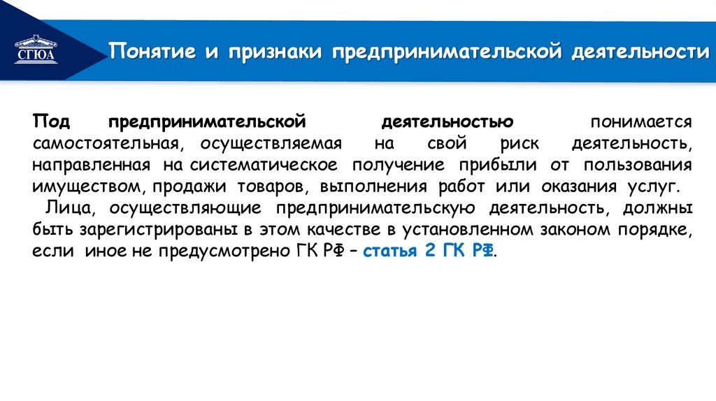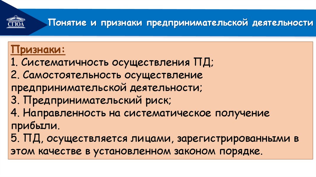 РЕМОНТ Понятие и признаки предпринимательской деятельностиПод