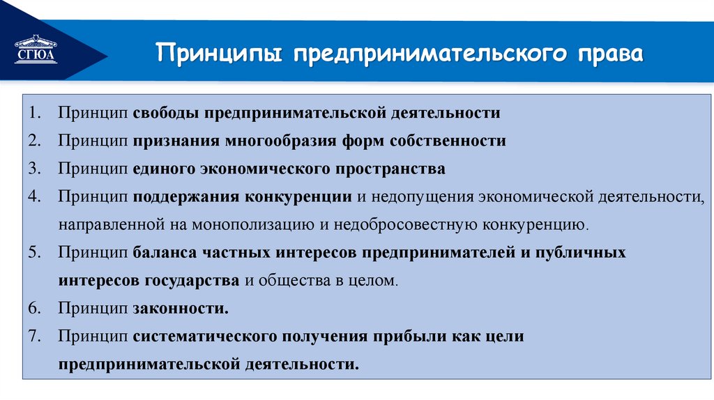 5. Принцип баланса частных интересов предпринимателей и публичных
