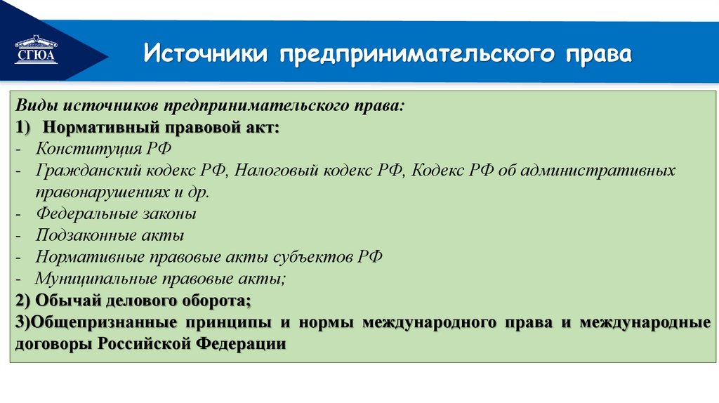 3. Нормативно-правовой акт как источник предпринимательского права.