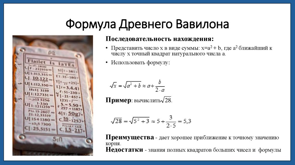 Формула Древнего ВавилонаПоследовательность нахождения: