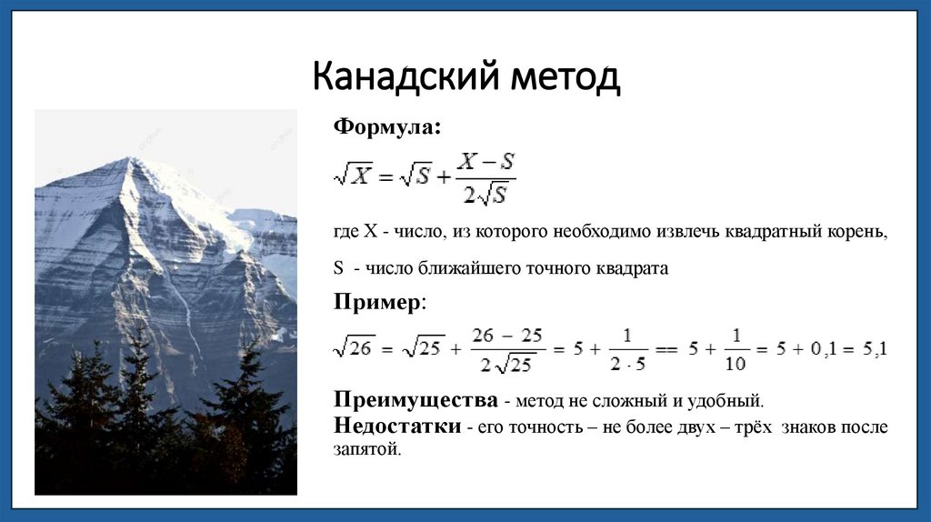 Суть метода: для извлечения квадратного корня можно разложить число на