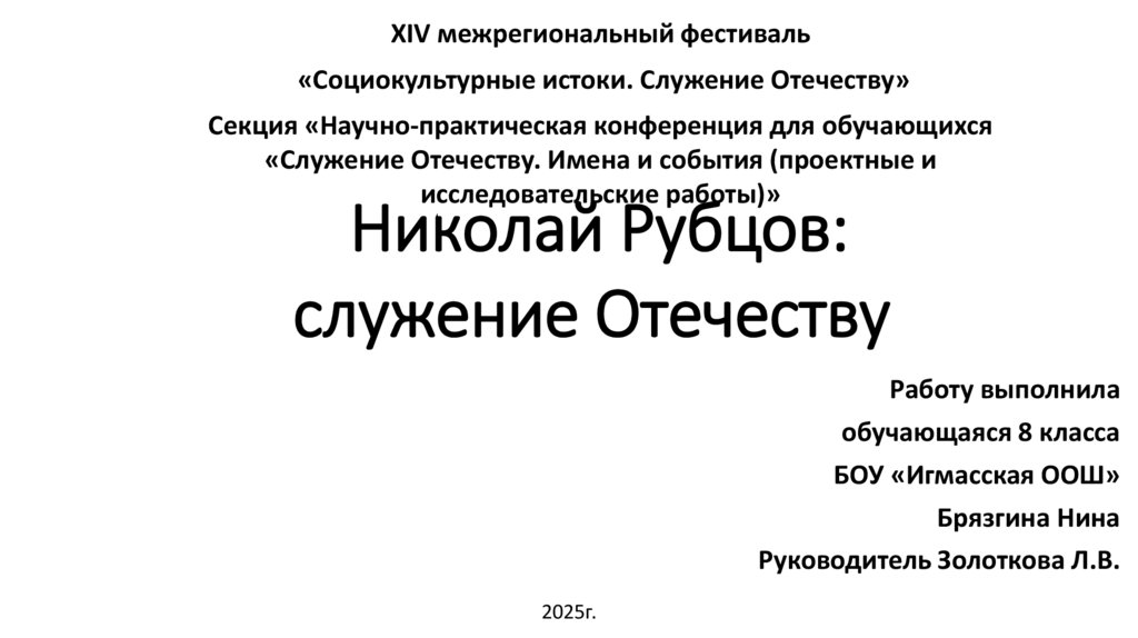Служение Отечеству. Имена и события (проектные и исследовательские работы)