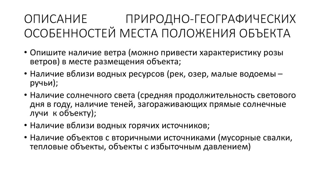 ОСОБЕННОСТЕЙ МЕСТА ПОЛОЖЕНИЯ ОБЪЕКТА