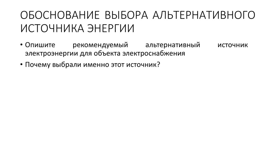 ОБОСНОВАНИЕ ВЫБОРА АЛЬТЕРНАТИВНОГОИСТОЧНИКА ЭНЕРГИИ