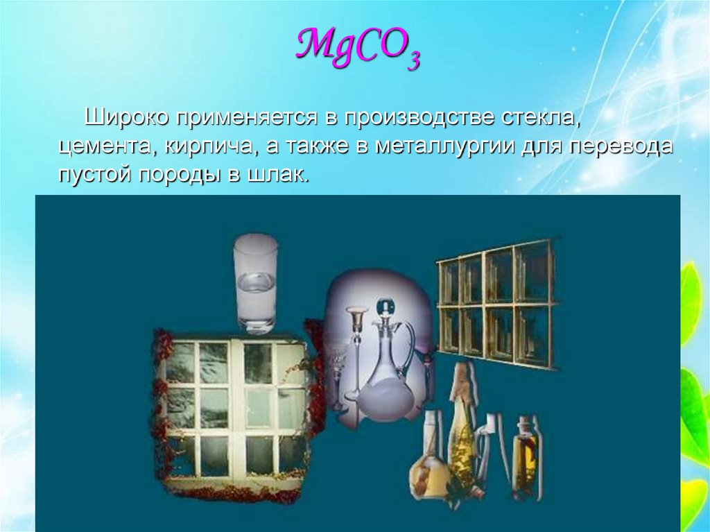 Широко применяется в производстве стекла,цемента, кирпича, а также в металлургии для перевода