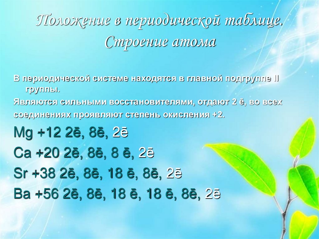 В периодической системе находятся в главной подгруппе IIгруппы.