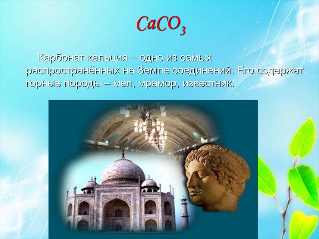 Карбонат кальция – одно из самыхраспространённых на Земле соединений. Его содержат