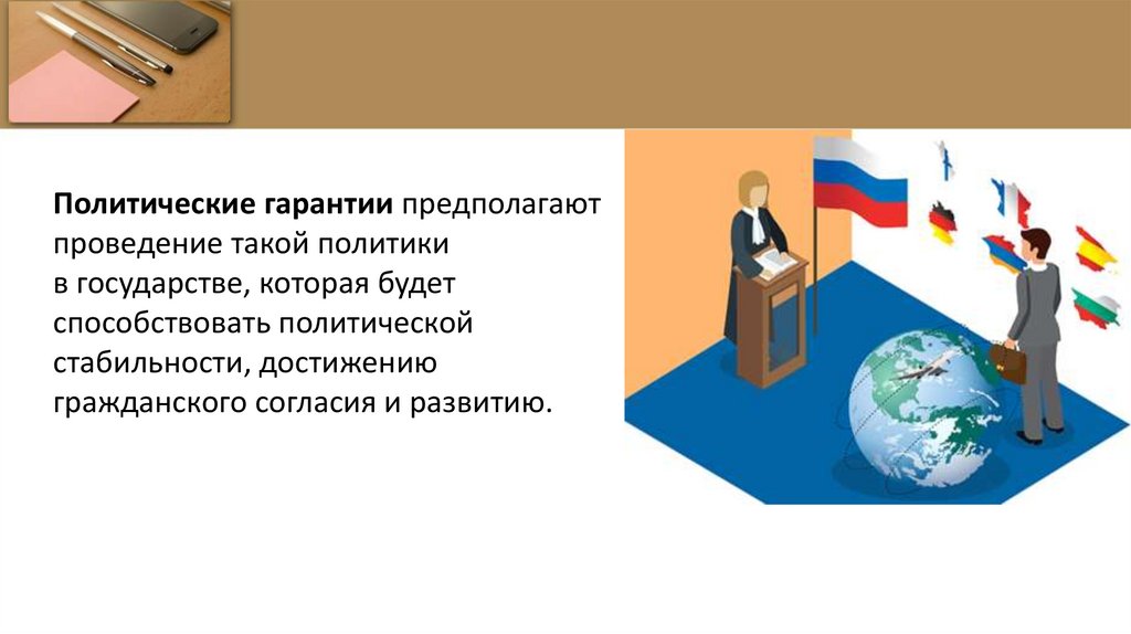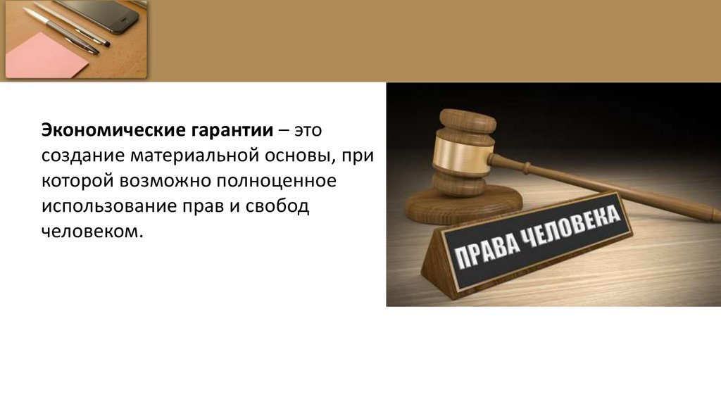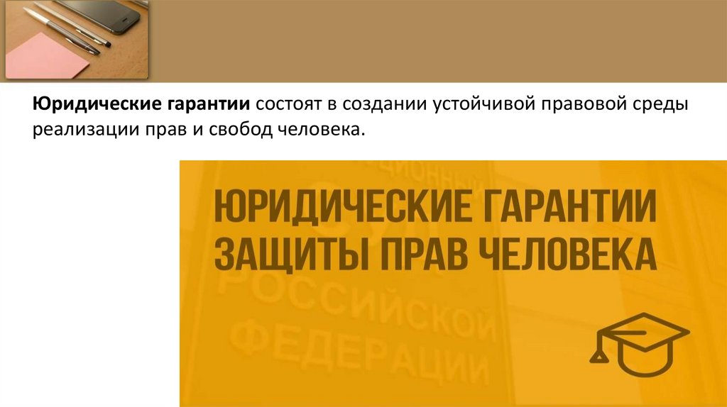 Юридические гарантии состоят в создании устойчивой правовой средыреализации прав и свобод человека.
