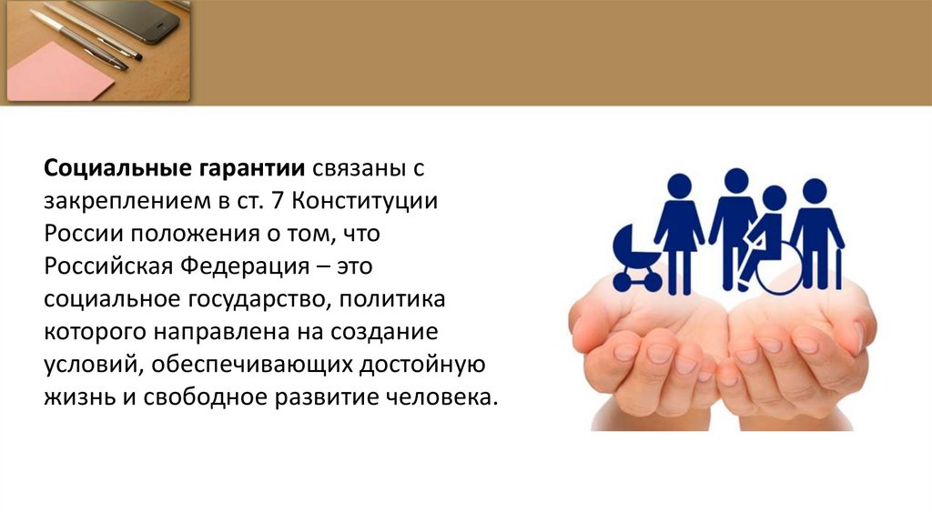 Социальные гарантии связаны сзакреплением в ст. 7 Конституции