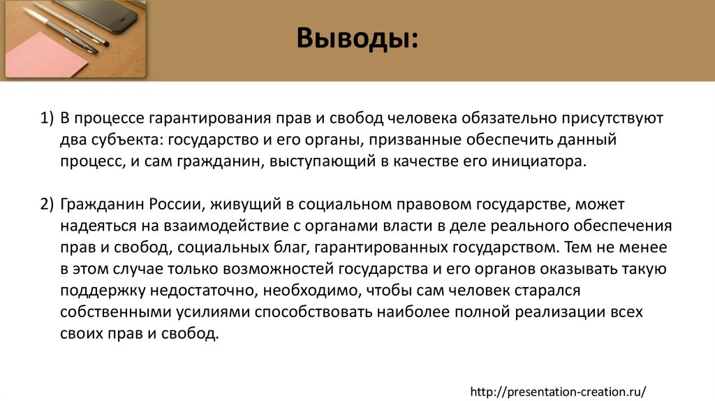 Выводы:1) В процессе гарантирования прав и свобод человека обязательно присутствуют