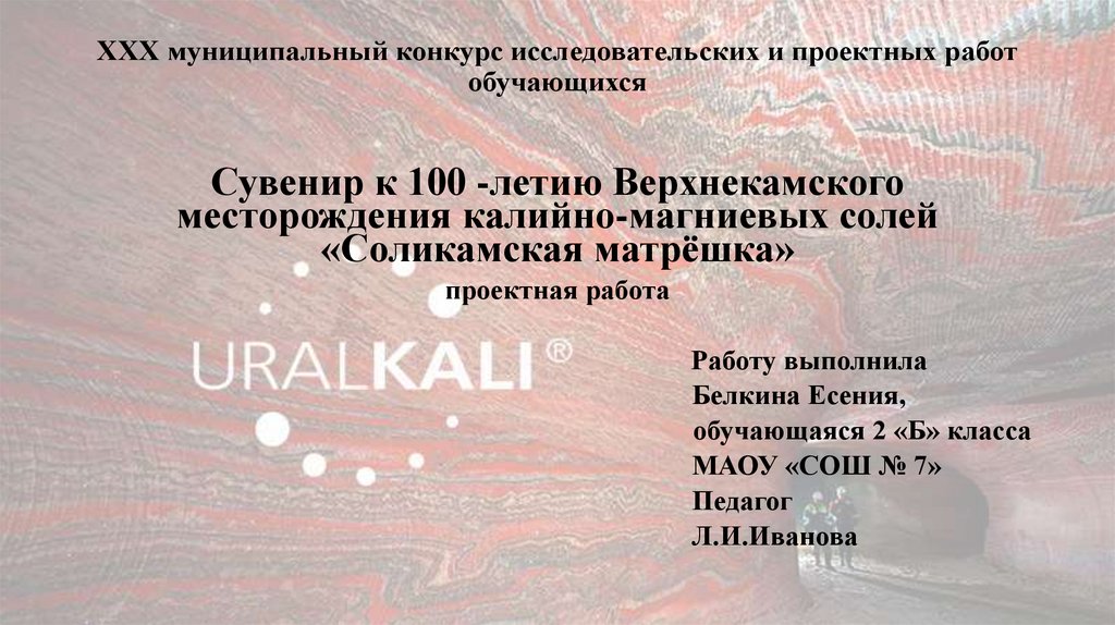 Цель: Создание сувенира «Соликамская матрёшка» к столетиюВерхнекамского месторождения калийно-магниевых солей.