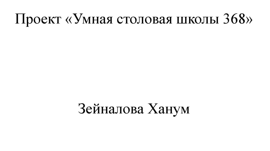 Проект «Умная столовая школы 368»Зейналова Ханум