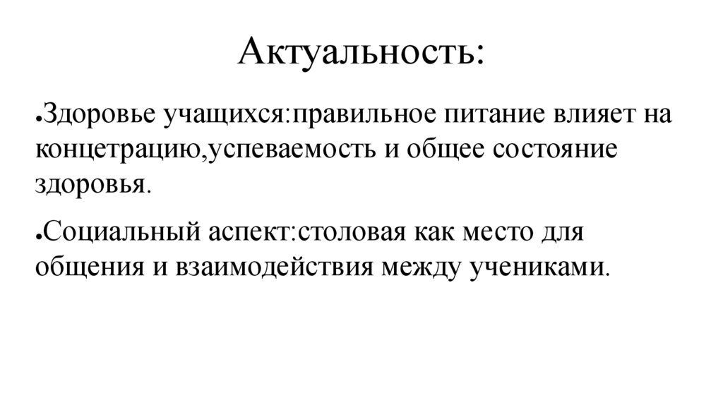 Актуальность:Здоровье учащихся:правильное питание влияет на