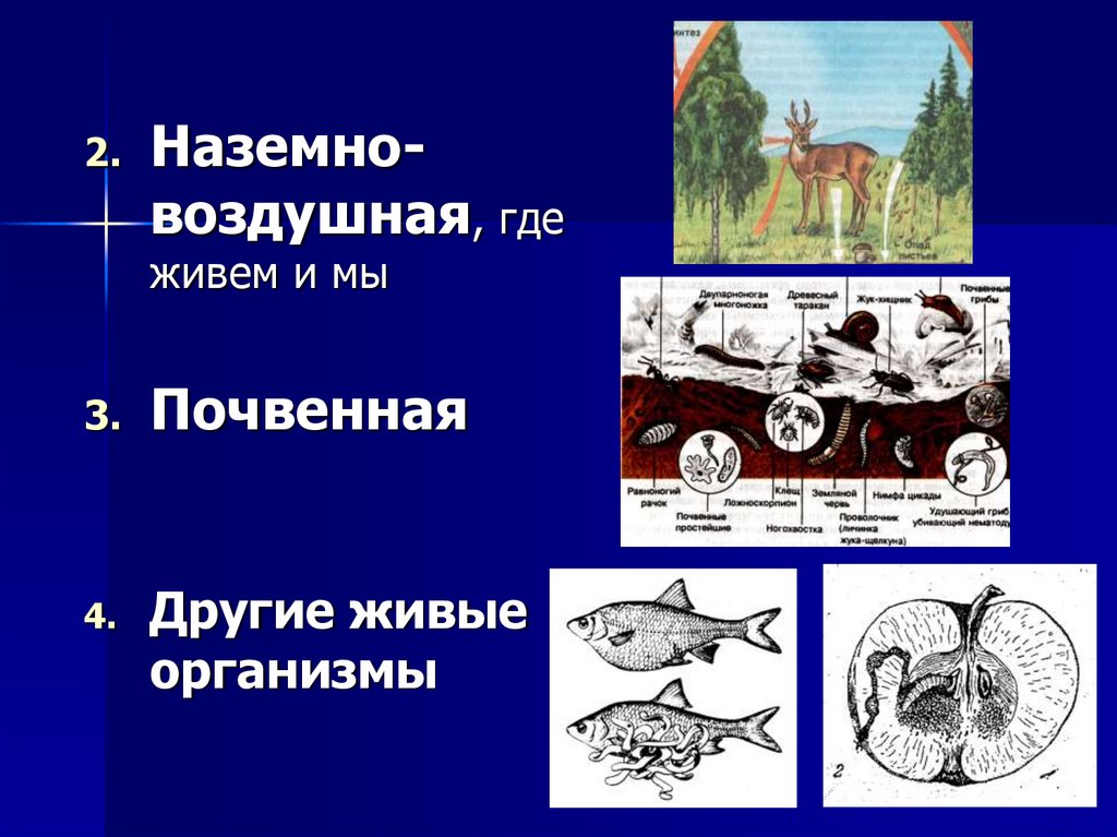 16. На Земле существует 4 основных среды обитания организмов: