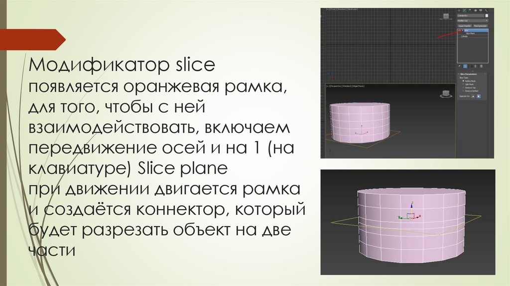 Модификатор sliceпоявляется оранжевая рамка,