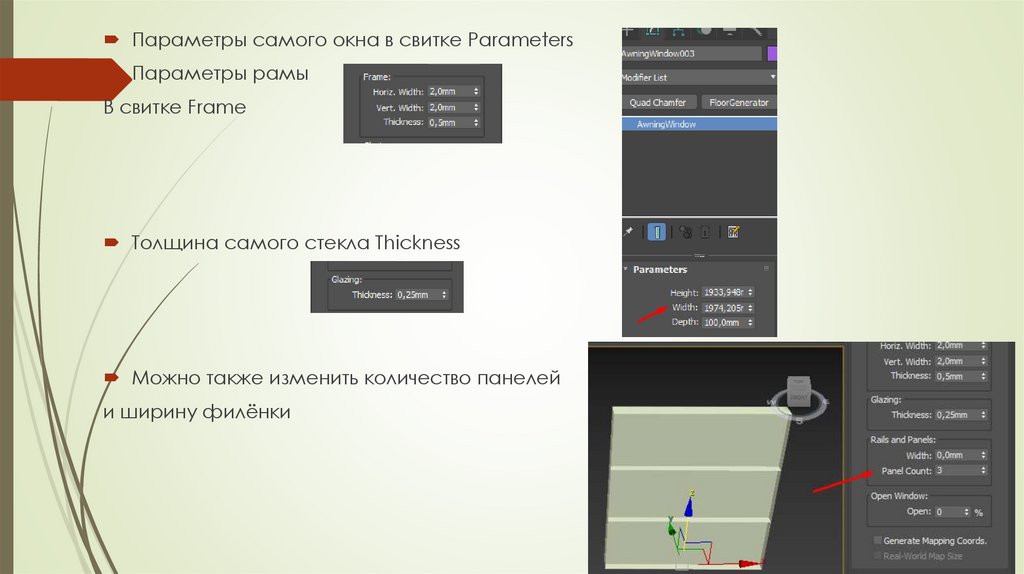Параметры самого окна в свитке ParametersПараметры рамы