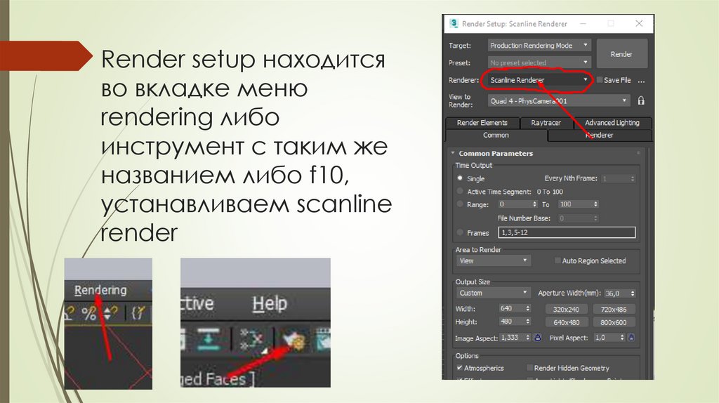 Render setup находитсяво вкладке меню