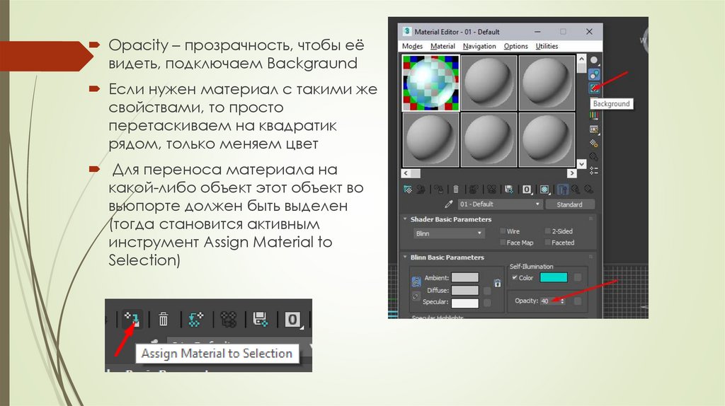 Opacity – прозрачность, чтобы еёвидеть, подключаем Backgraund