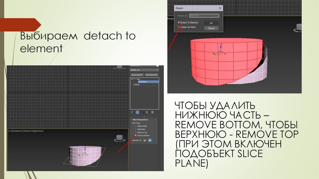 Выбираем detach toelement