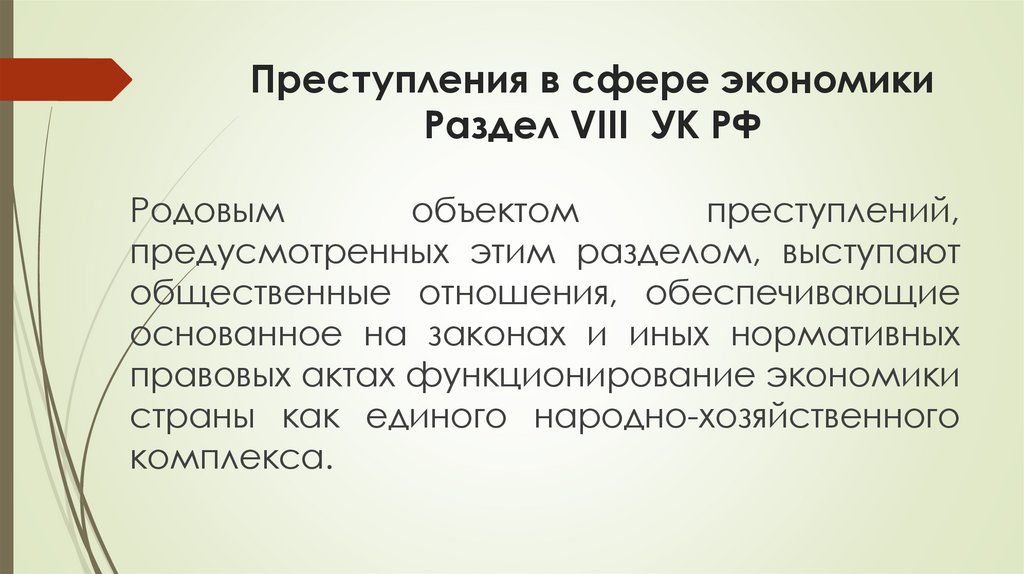 Преступления в сфере экономикиРаздел VIII УК РФ