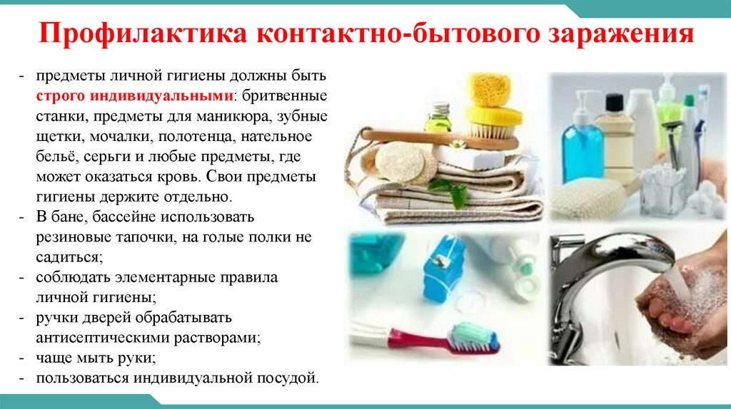 Профилактика контактно-бытового заражения- предметы личной гигиены должны быть