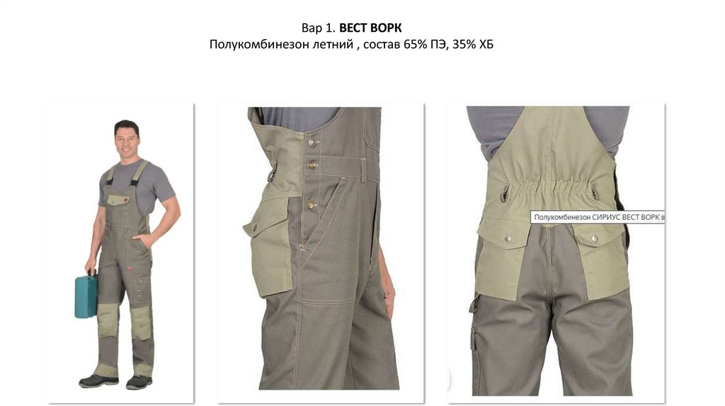 Вар 1. ВЕСТ ВОРКПолукомбинезон летний , состав 65% ПЭ, 35% ХБ