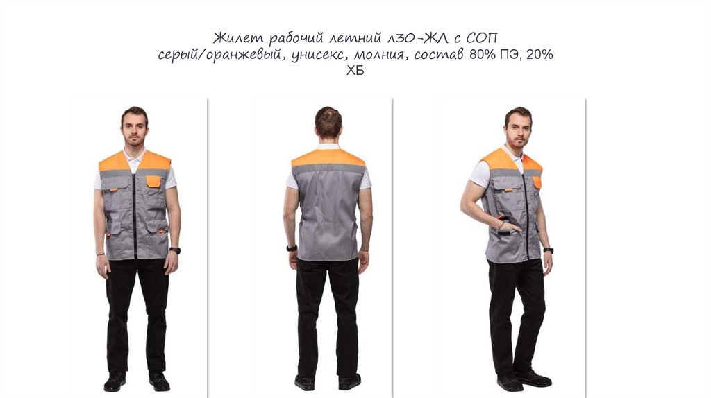 Жилет рабочий летний л30-ЖЛ с СОПсерый/оранжевый, унисекс, молния, состав 80% ПЭ, 20%